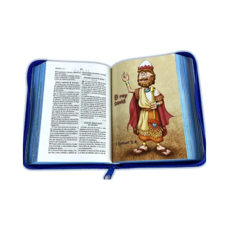 Amigos por siempre, esta biblia es diseñada especialmente para que las niños conozcan las historias bíblicas de una manera atractiva, moderna, su cubierta hecha en un material que la hace resistente al agua y a que pueda ser llevada con comodidad a cualquier lugar. Tipografía adecuada para niños y niñas de 7 a 11 años, 56 divertidas láminas en colores intercaladas en el texto bíblico, que ayudan en la fijación de las verdades bíblicas, Concordancia para que el niño aprenda a buscar temas de la Biblia y ayudas suplementarias que lo llevarán a conocer las Escrituras de una manera práctica y le guiarán en sus inicios de la vida cristiana.