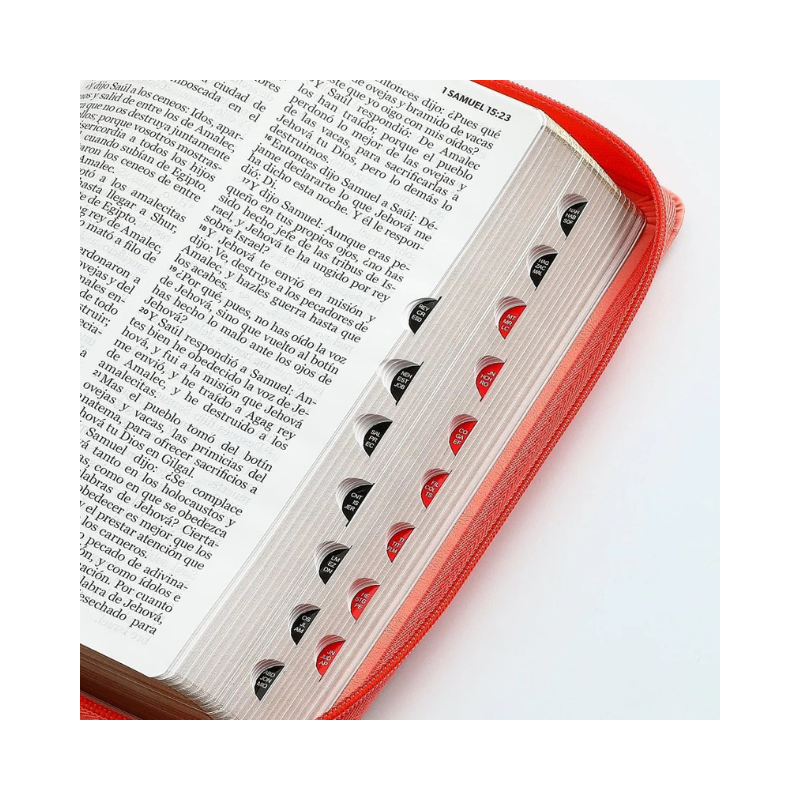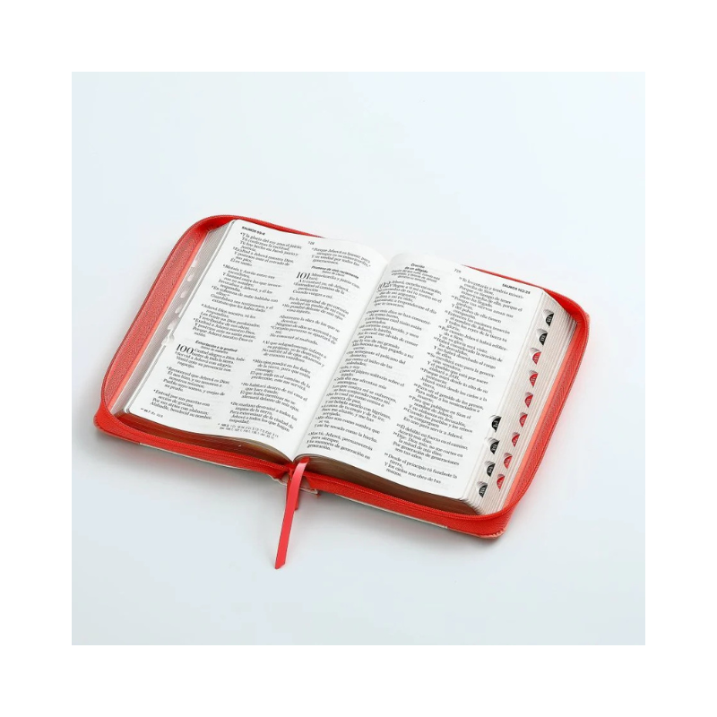 Reina Valera 1960, tamaño manual , imitación piel tritono, canto dorado, con cierre y con índice, palabras de Jesús en rojo, concordancia , Concordancia de personajes bíblicos. ayudas, referencias cruzadas. 32 páginas a todo color con ayudas y esquemas. 12 mapas a todo color .Letra 12.5 puntos.