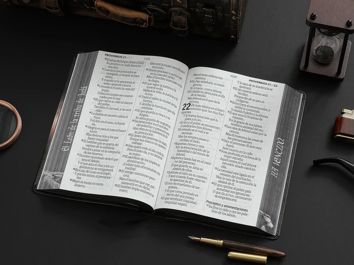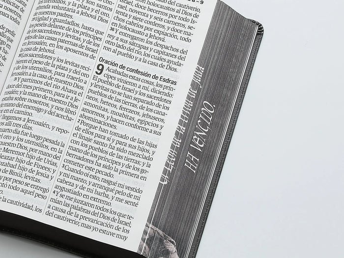 Reina Valera 1960, tamaño de Biblia Grande (15×23 mm), Letra Súper Gigante 19 puntos, i/piel, canto pintado con versículo, palabras de Jesús en rojo, concordancia , Concordancia de personajes bíblicos. ayudas, referencias cruzadas. 32 páginas a todo color con ayudas y esquemas. 12 mapas a todo color .Letra 19 puntos. 2112 páginas